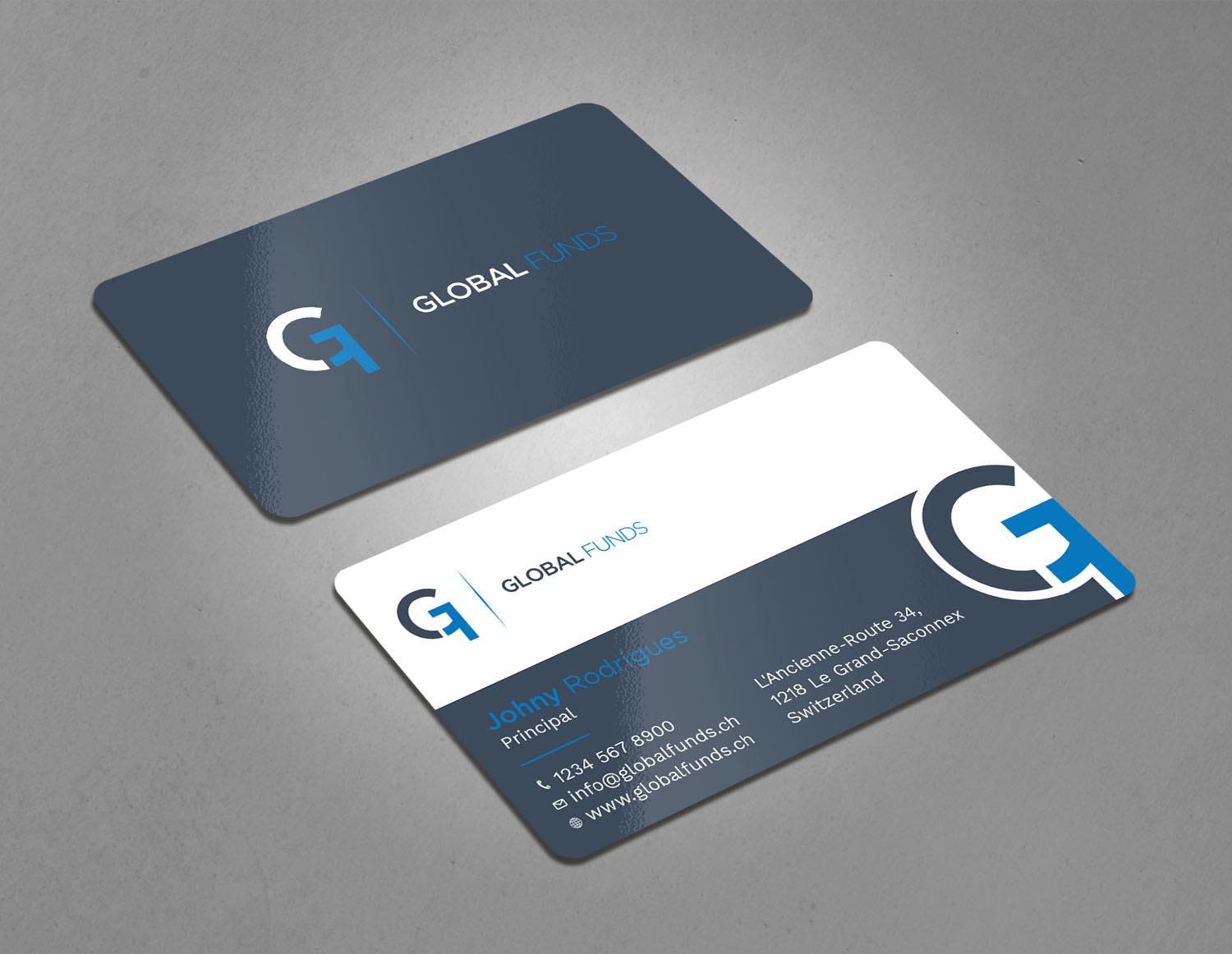 Tripti Ranjan Gain, un Bangladeshi designer, created this Léger, Real Estate business card on 9th July, 2019 for une entreprise à Switzerland. The business card was designed for the project 'Global Funds SA Business Cards'.