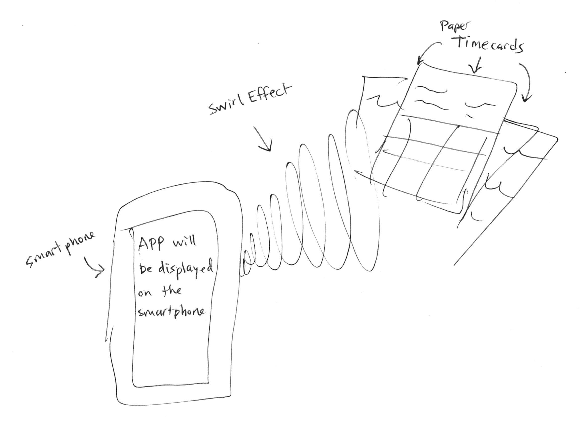I would like an image of a cel phone with our APP on it. Behind it will be a picture I took of a pile of time cards. I would like the time cards to be funneled or swirled into the back of the phone. Like a tornado effect. The paper time cards are being funneled into the back of the phone and now becomes the APP. I have included a rough drawing of what I am looking for. On the screen shot of our APP please remove the hand at the bottom. If the entire screen does not fit on a phone you may remove the top part and just put from days of week down.