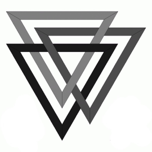 We are looking to create a logo with 3 symmetric upside down triangles over lapping like in the pic I've uploaded.