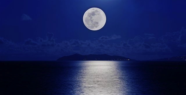 - triangle shape, full moon, ocean,