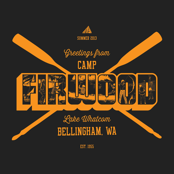 - Full color images. Must be printed using spot colors. Completely custom text/font... font should be something changeable to accommodate any specific camp name. Custom fonts ok for other possible phrases like "Around the fire" for example. But not for "at Ridgecrest Camp"