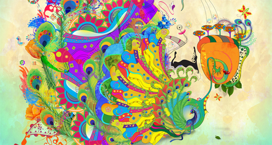 - mixed font, be colourful, highly decorative, contemporary, fresh, image and text NEON Metallic, TRIBAL
