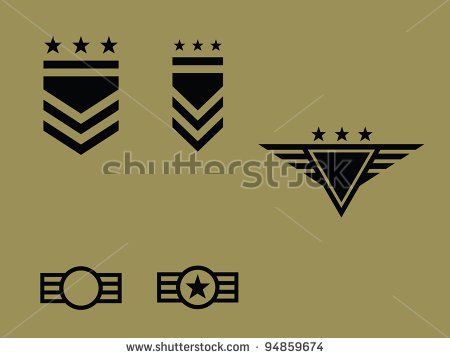 - Incorporation of some sort of abstract military rank, stars or firearms illustration/silhouette.