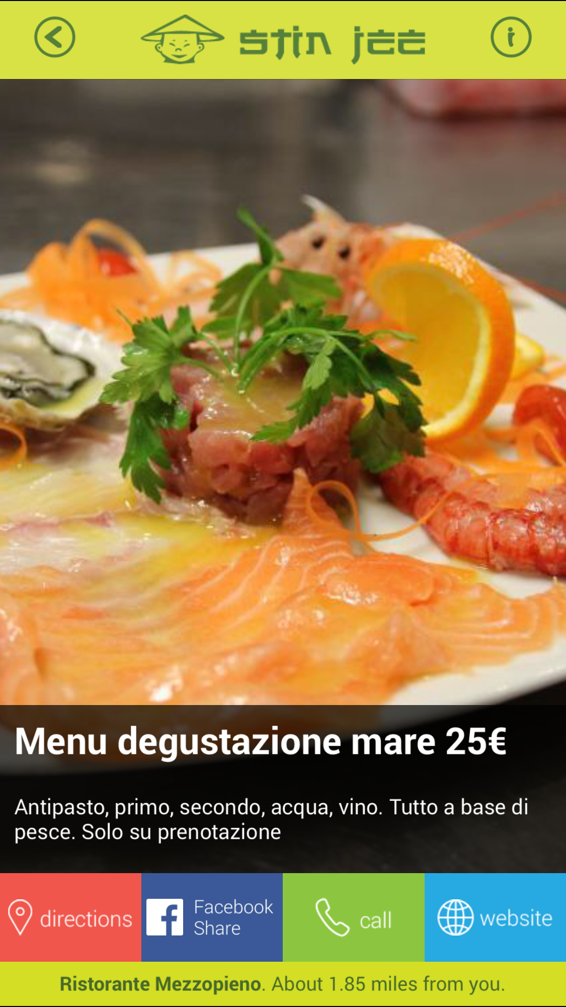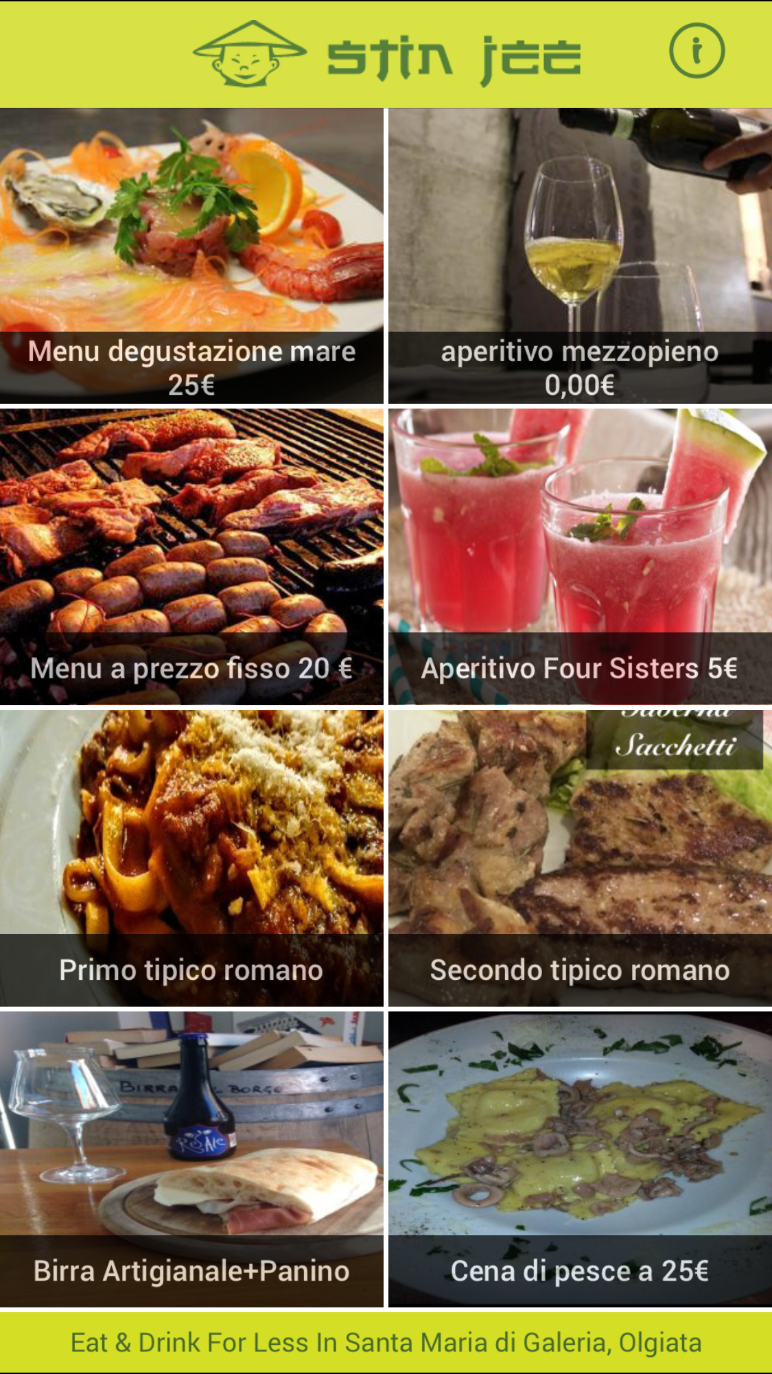 Go to http://stinjee.com/ to download the app. You will have to change the location to Rome, LA Italy to see specials (tap on the bottom green bar in the home page to change the location).