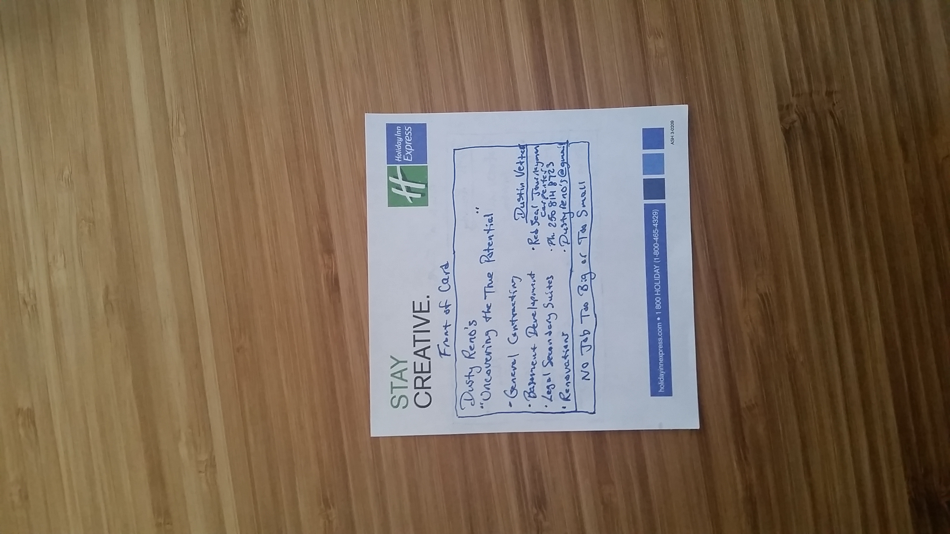 Dusty Reno's business on 1 side of the card