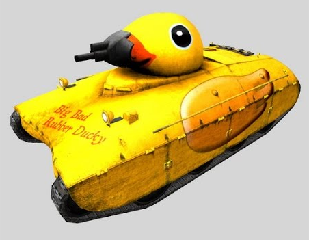 - Could be a duck riding a tank, inspired by apocalypse now?