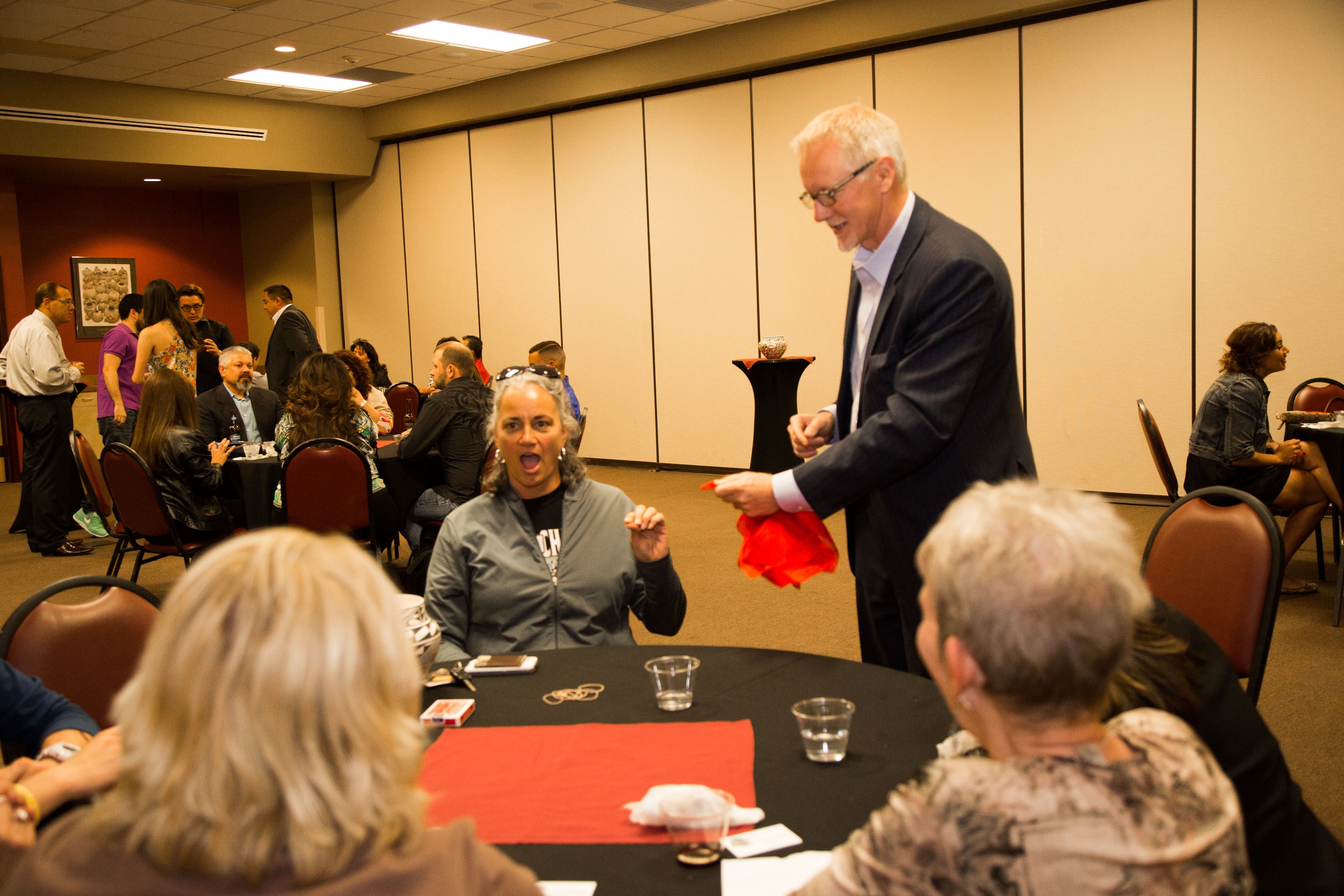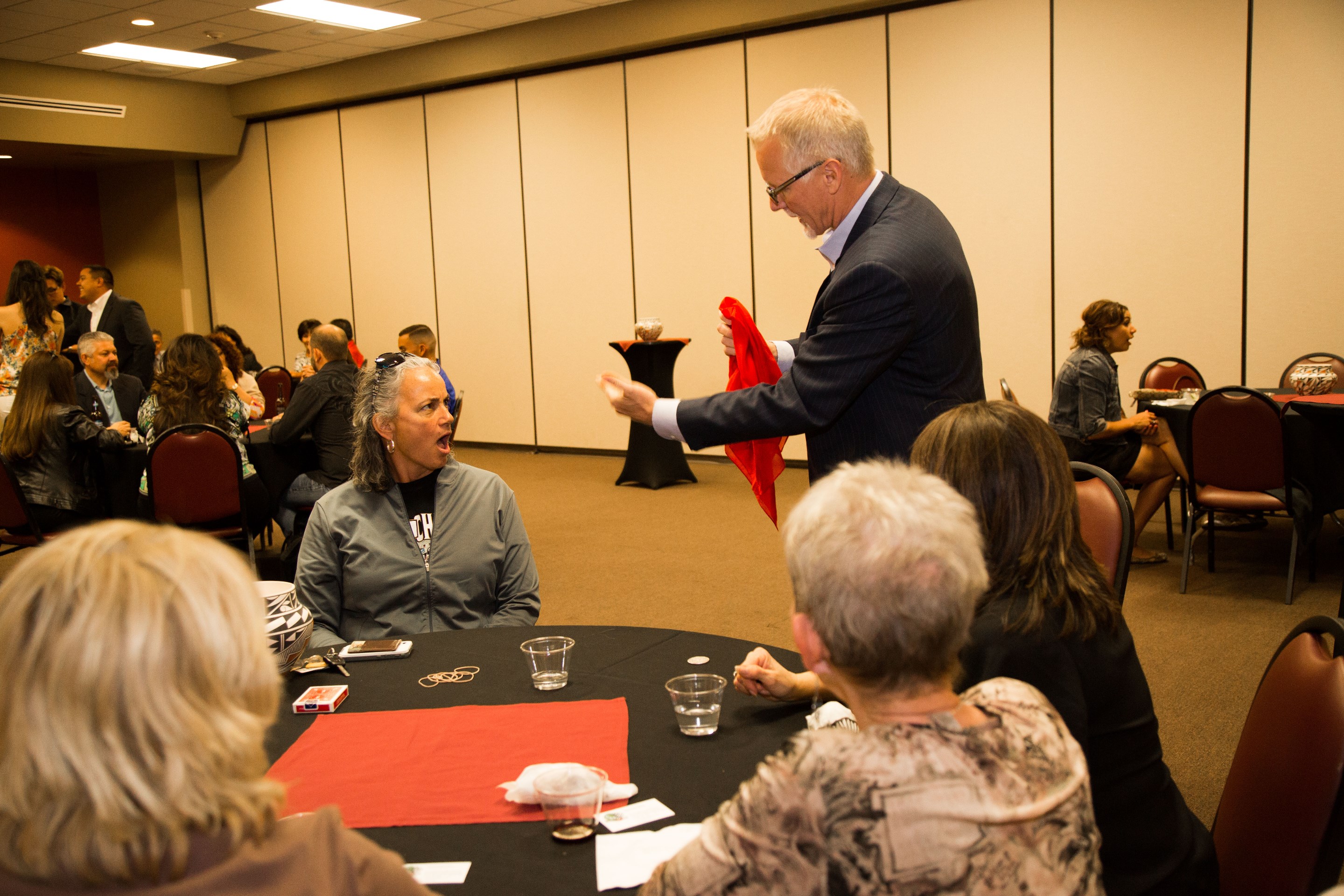 Speaker (using magic during presentations to help build on a point or