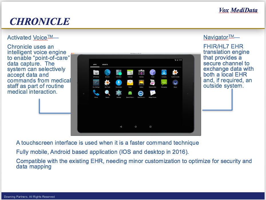 Logo for Vox MediData, a voice activated software application