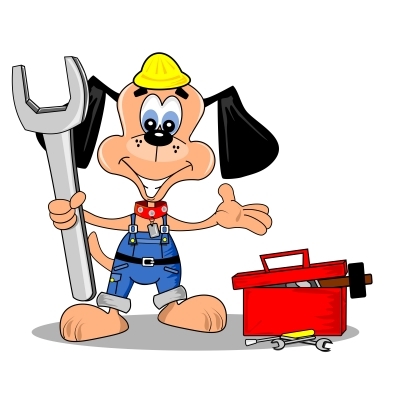 - 2 trustworthy faced dogs, 2 different heights - prefer the face to be a basset hound or beagle. Characters must have plumbing tools or equipment by them or in their hands and wearing a cap.