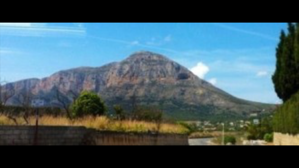 - The curve of the "Montgo Mountain" shape of the Elephants head in profile with the long trunk heading to the sea, sometimes the Montgo has a small tuft of cloud on top looks like a Turban hat. Or the mountain to one side with wording,. Javea, or. el Montgo massif.or. Xabia..or The Montgo Massive..