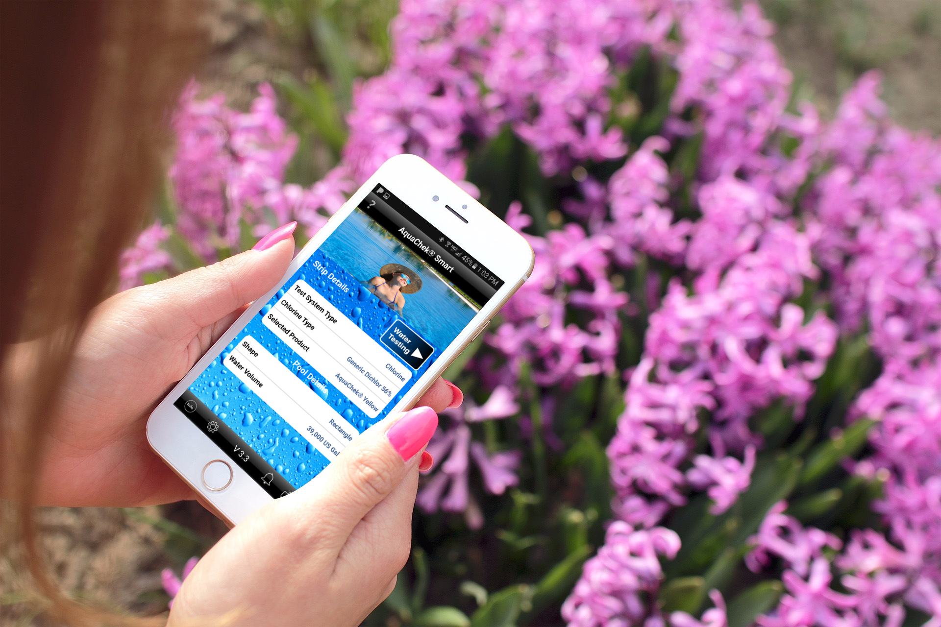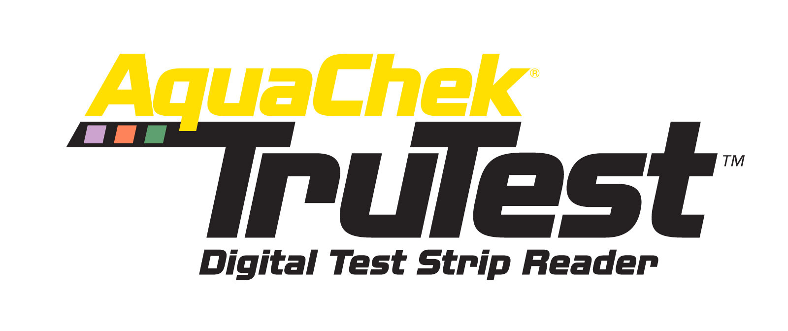 - - Product name 'AquaChek Smart' in NissanOpti-italic font in a yellow that matches the logo