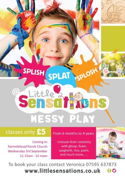 Flyer design for Messy Kidz which is a Messy Play activity for Under 5 kids.