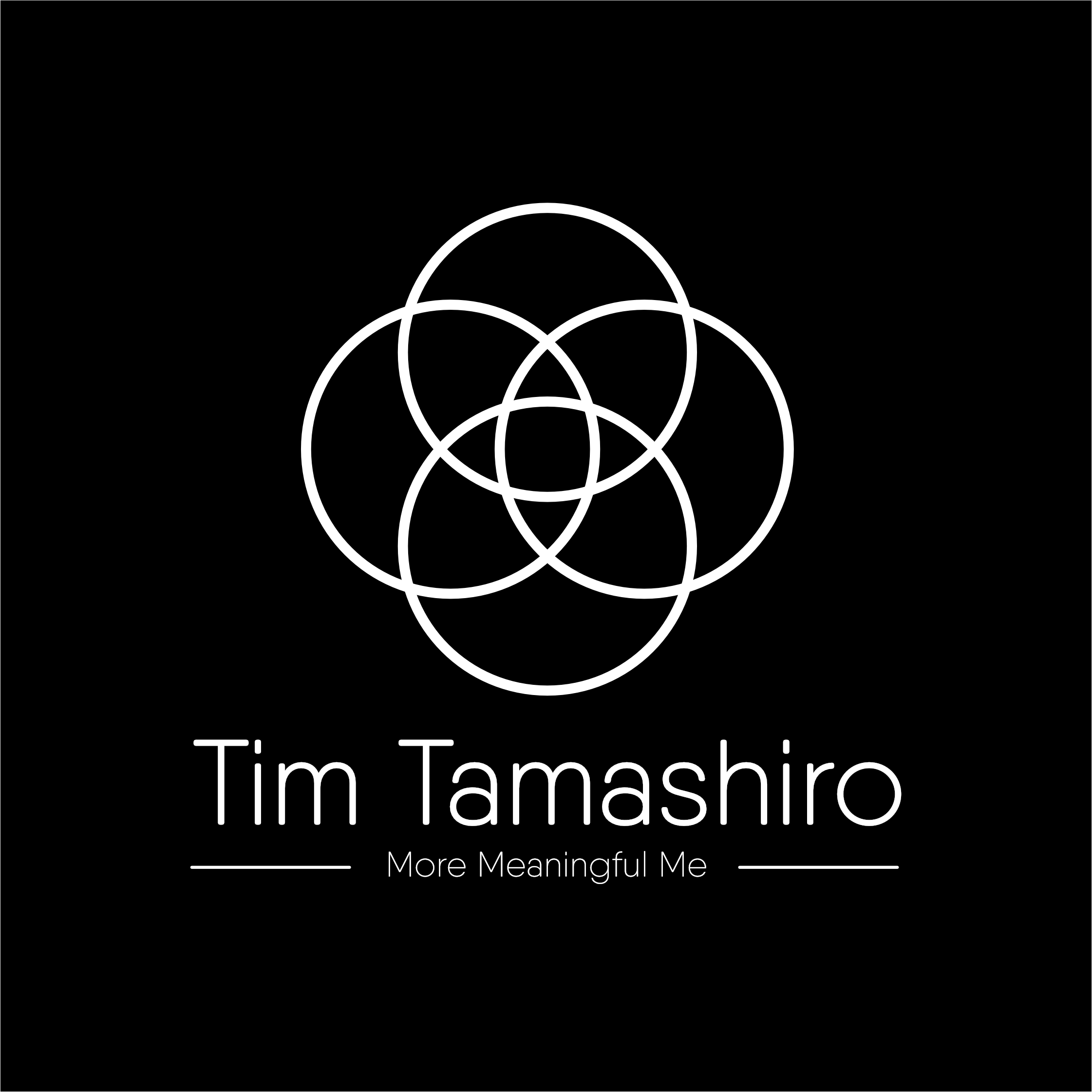 So I'd like a logo that captures my new endeavour. I'd like it to include my name (Tim Tamashiro), my tag line (more meaningful me) and a four ring symbol that represents Ikigai.