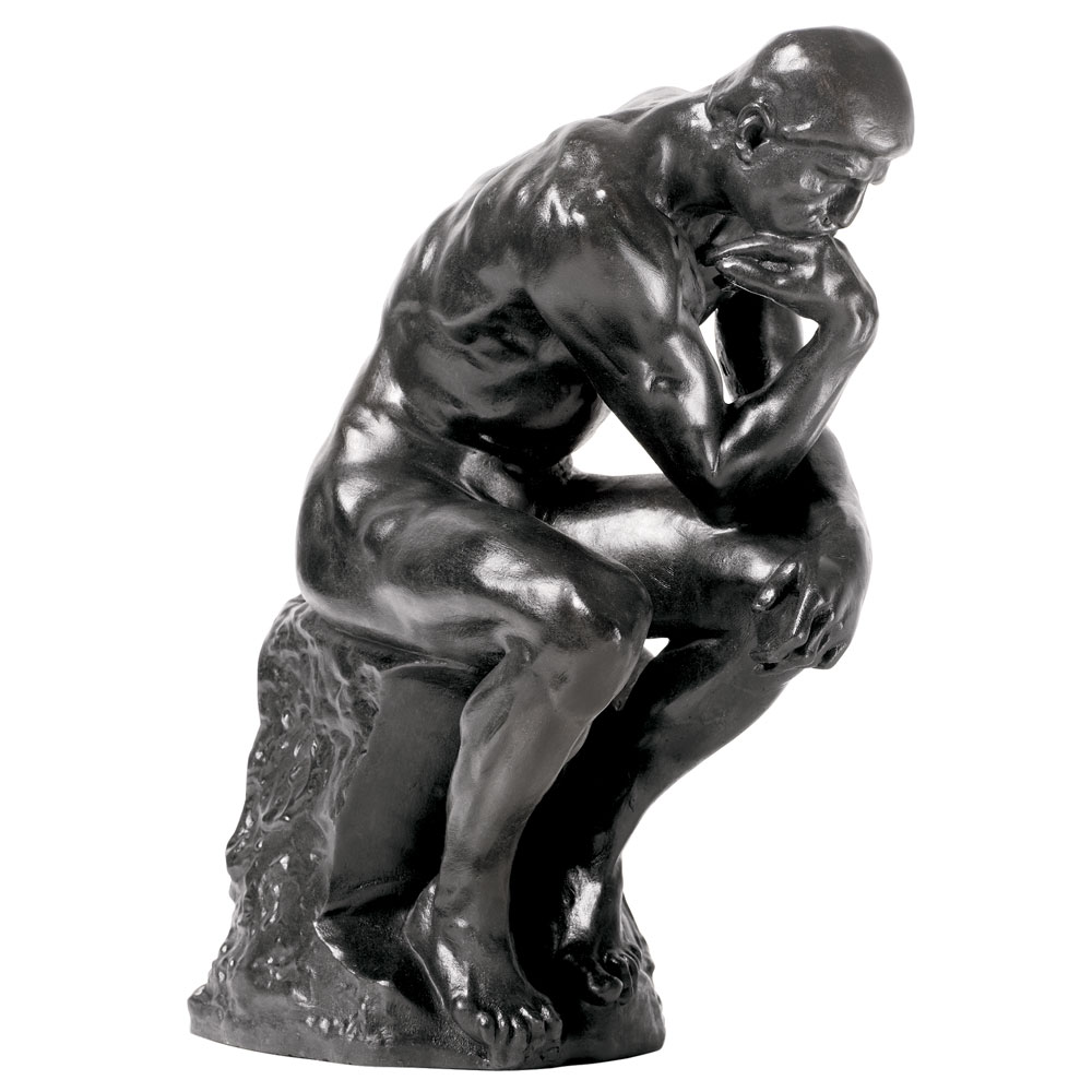 We want an abstract logo for our community Thought Leaders in Business - a group that brings together diverse thinkers in various settings to discuss and present a wide range of topics. The logo needs to be an abstract, single-color drawing, based on Rodin's The Thinker (http://www.musee-rodin.fr/en/collections/sculptures/thinker). To get a sense of the design, consider the following logo based on a lion for the New York Public Library web page (upper left): https://www.nypl.org