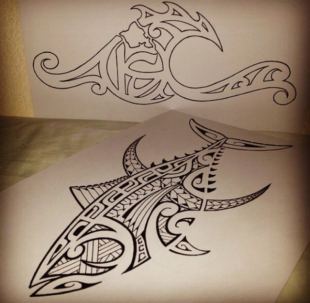 - Hawaiian tribal tuna or fish included in the logo. Circular.