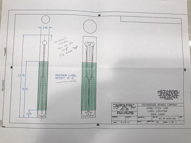 - The vertical length is up to you based on what you put on the label (tube high: 13.625", Stick high: 12")