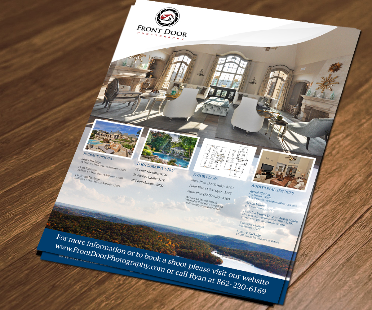 I’m looking for an letter size flyer(two sided, full bleed) for my real estate photography business Photo 941 to introduce my business to local real estate agents and brokers.