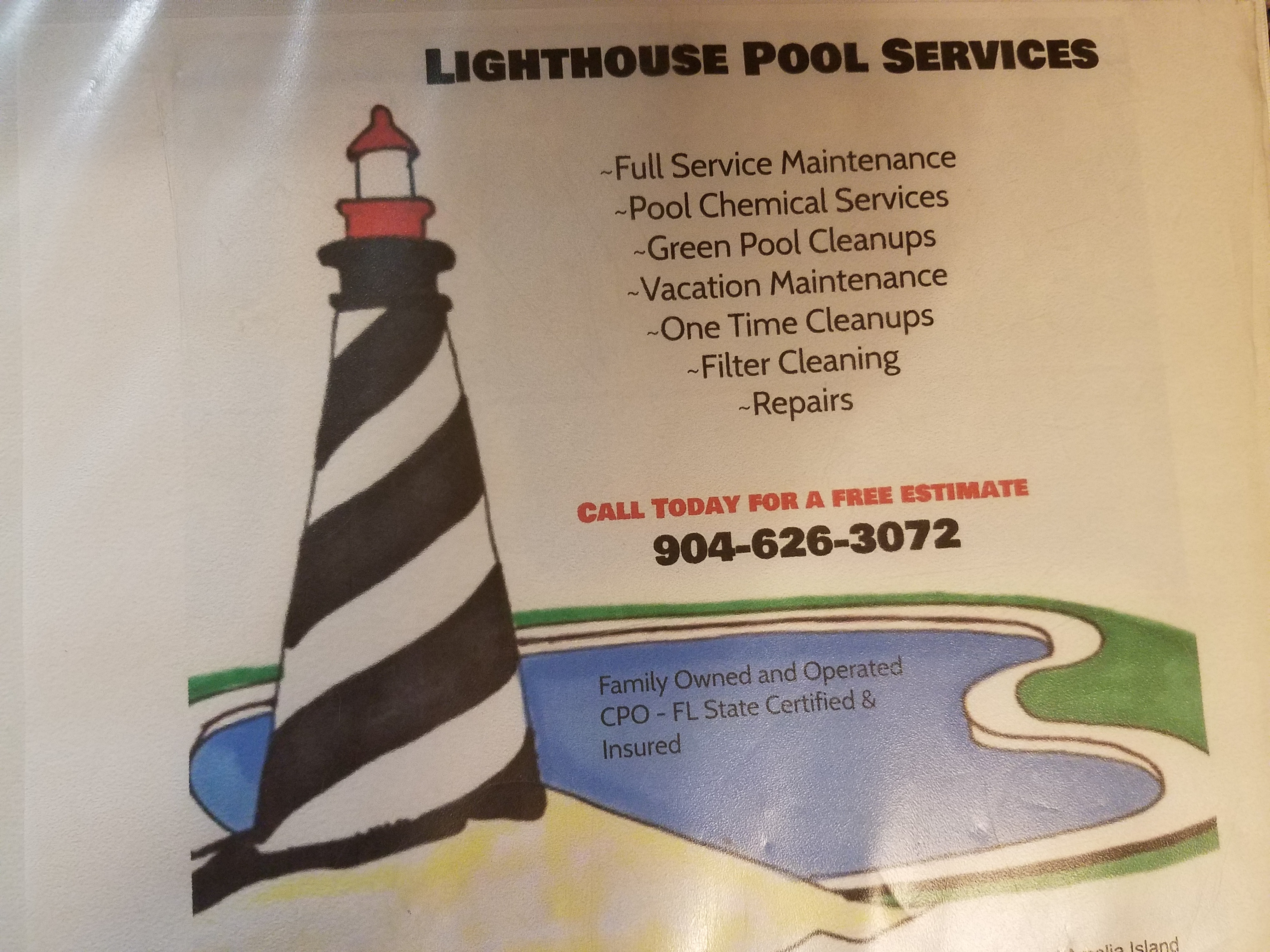 This logo is for a pool cleaning business that serves the area of Amelia Island and Fernandina Beach. The business is family owned and operated, and delivers high quality, timely solutions with attention to detail. Words that describe Lighthouse people and services are: personal, professional, friendly, trustworthy.