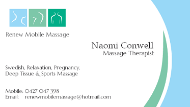 *Contact details I'd like included on the card are: Naomi Conwell, Mobile: 0427047398, Email: renewmw@hotmail.com