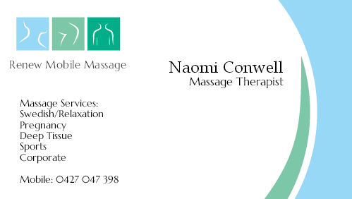 *I am a qualified massage therapist & require a business card for my new business 'Renew Massage & Wellness'.