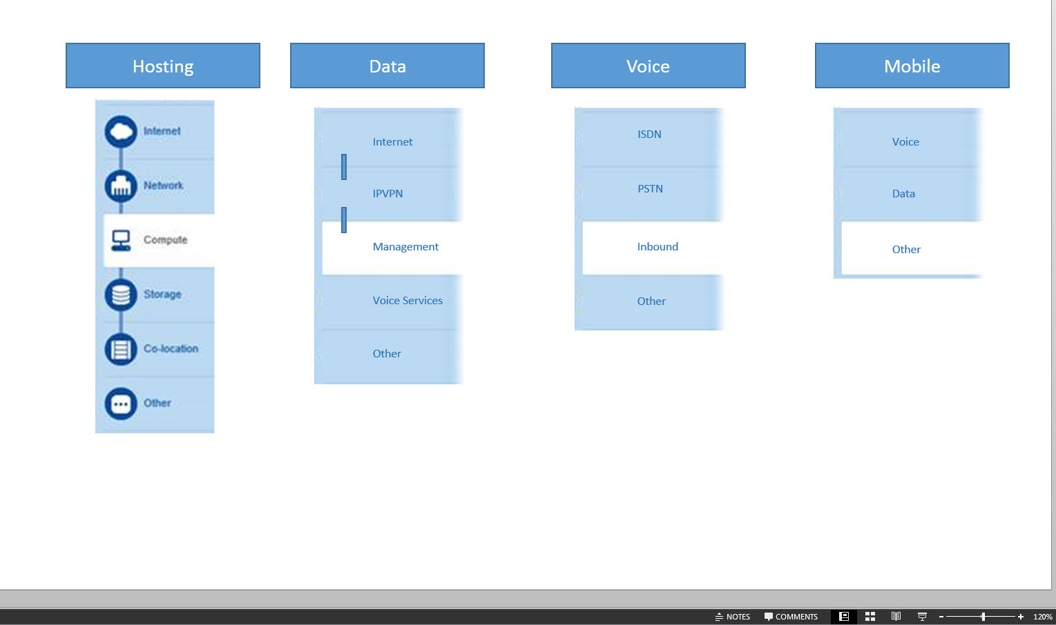 - IP/VPN (e.g. point to point arrow connections)