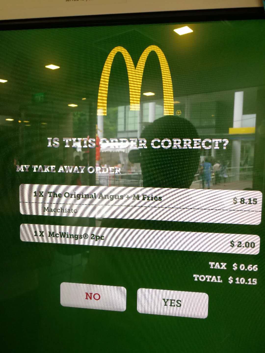 Page 3. Order Review Page. No edit features allowed on this page, only two buttons: 'No' to go back to Browsing Page, or 'Yes' to proceed to Payment Page 4. Check Mcdonald's screen.