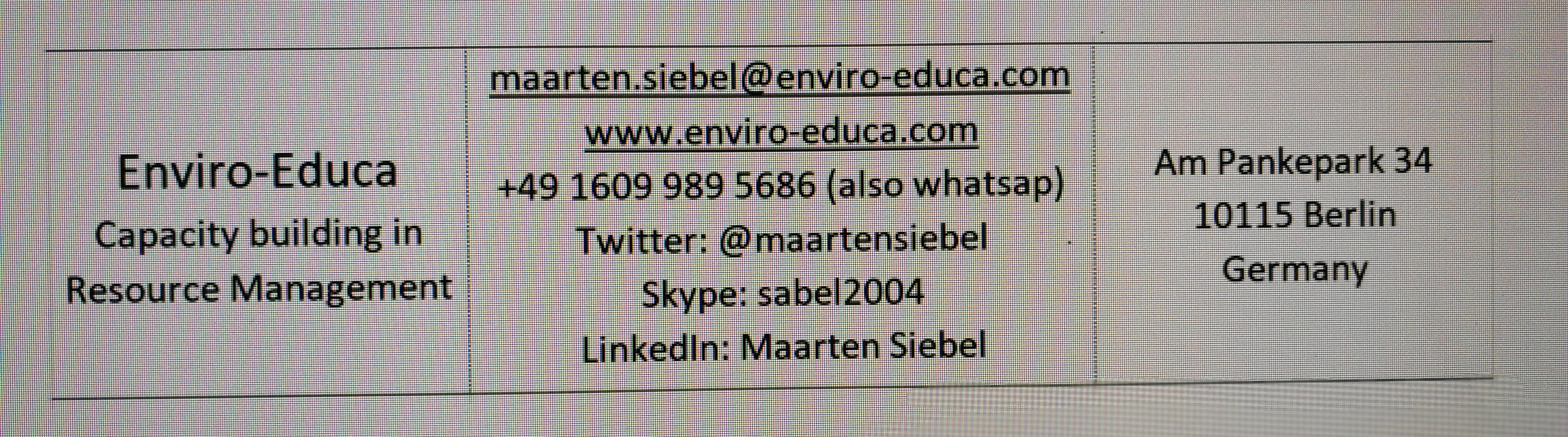 Need design of a business card (later to be completed by letterhead and webdesign in same fashion) for a professional who works in the field of capacity building of professionals in mostly developing countries in the field waste/resource management, waste prevention/reduction, cleaner production, stakeholders involvement, etc.