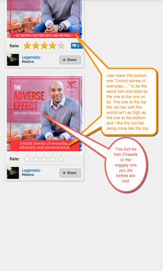 I've attached two pictures for the podcast. I'm not sure which one to use just yet so I put them both here to see what i created by your great people!