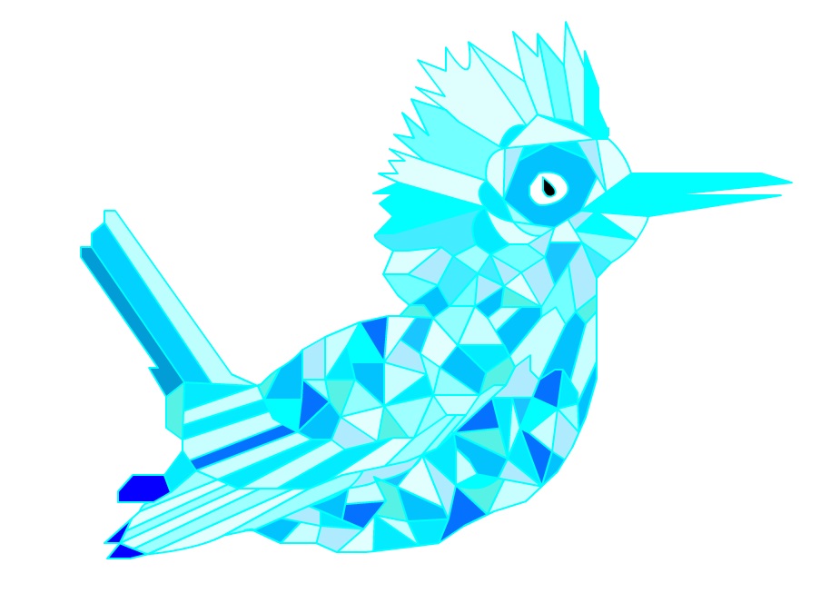 - Stylized version of King Fisher bird and aqua color variations