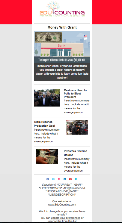 Newsletter Design for Financial Education Videos Startup