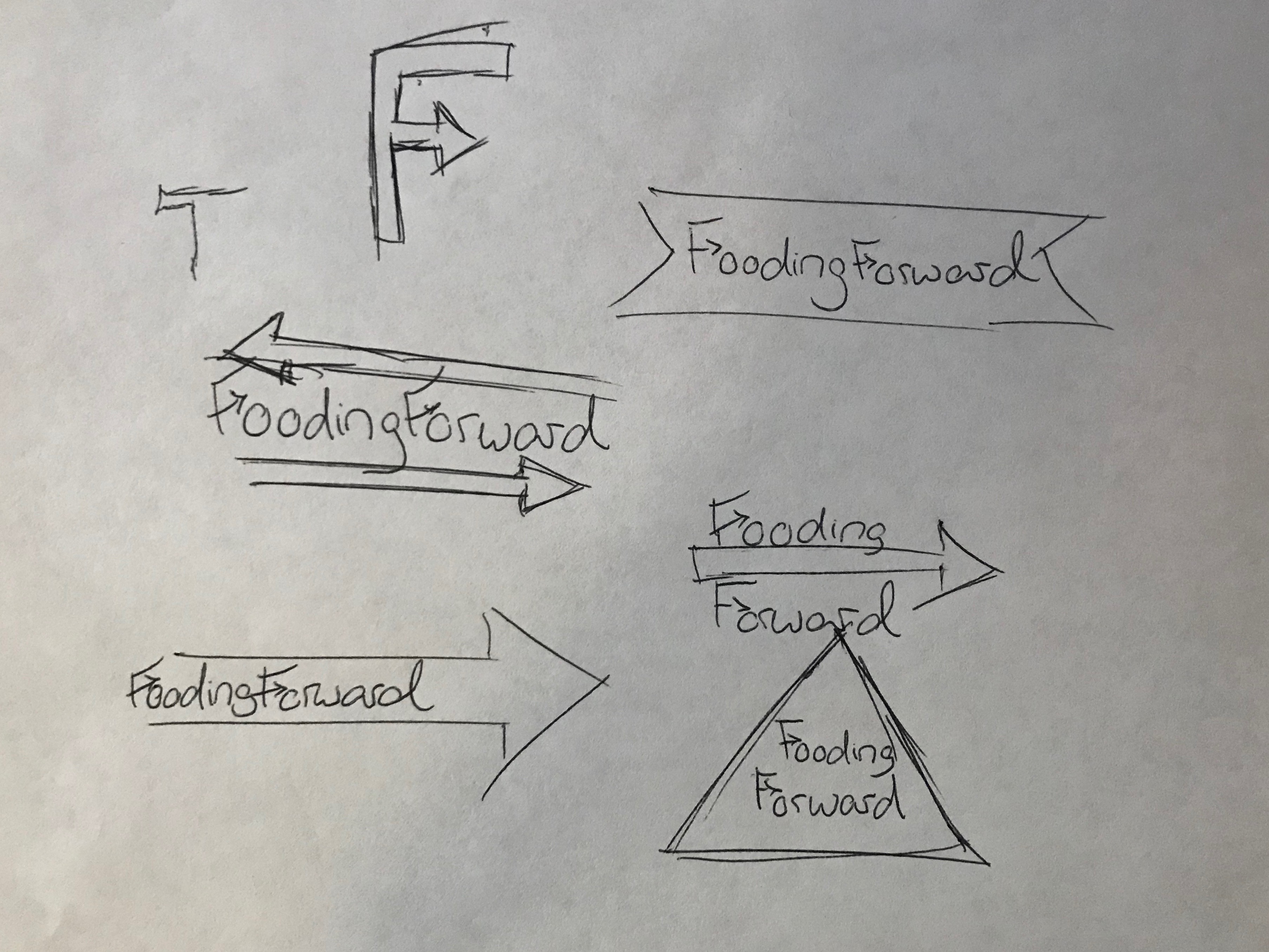 - I want an arrow to be featured somewhere in the design. Initially I wanted the small line on the "F" for both "Fooding" and "Forward" to have an arrow shape with the arrow pointing out, but I'm open to other ways to feature the arrow.