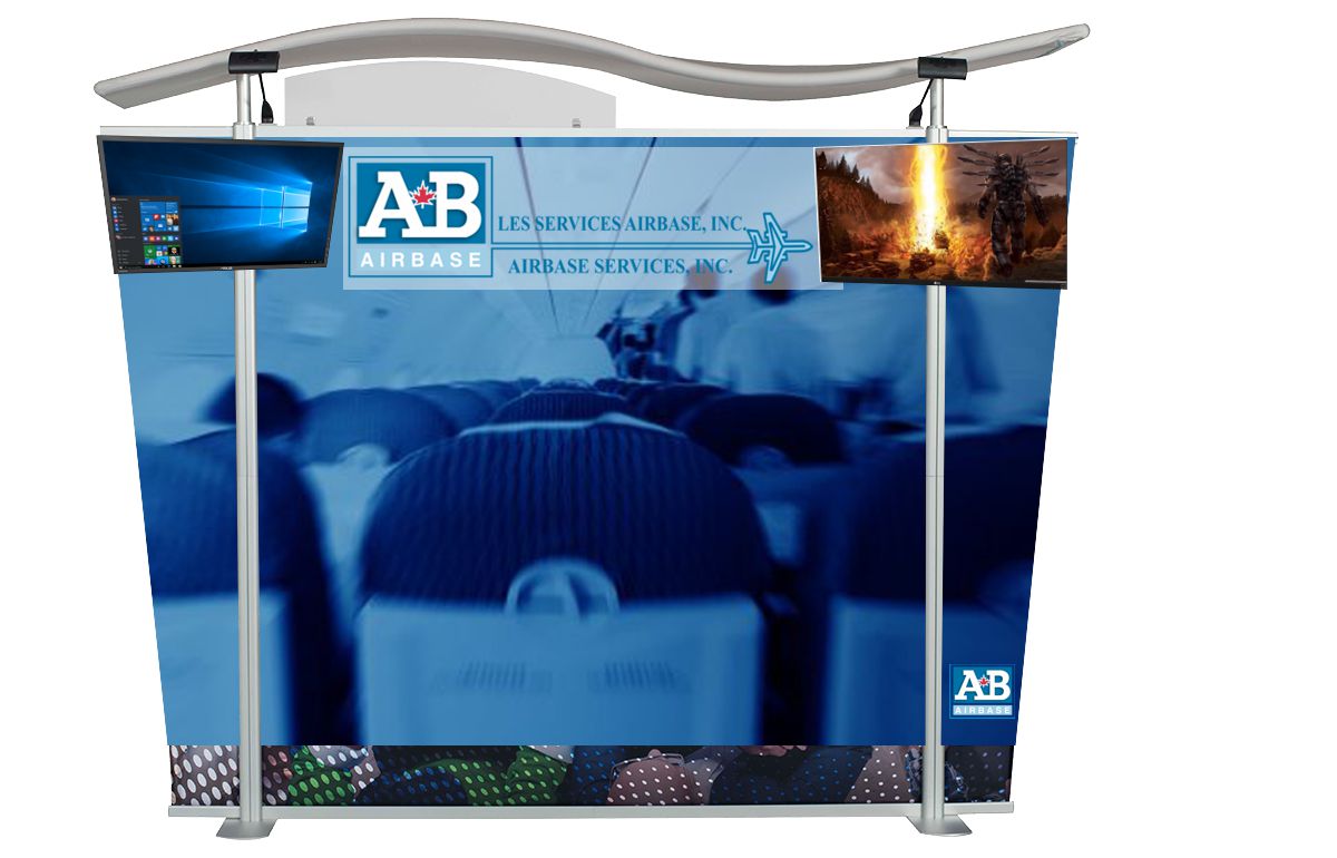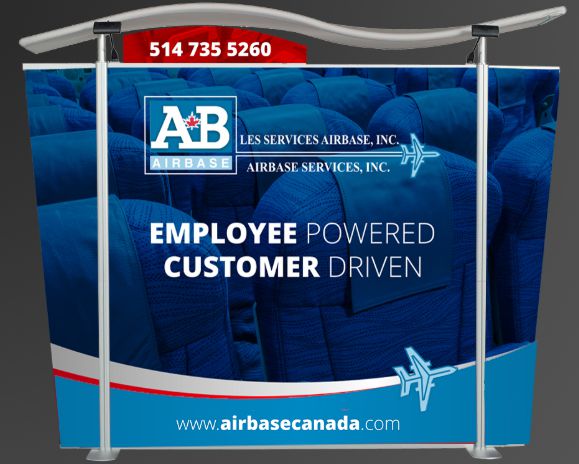 Back drop for small trade show booth focusing on the image of our WebSite: www.airbasecanada.com.