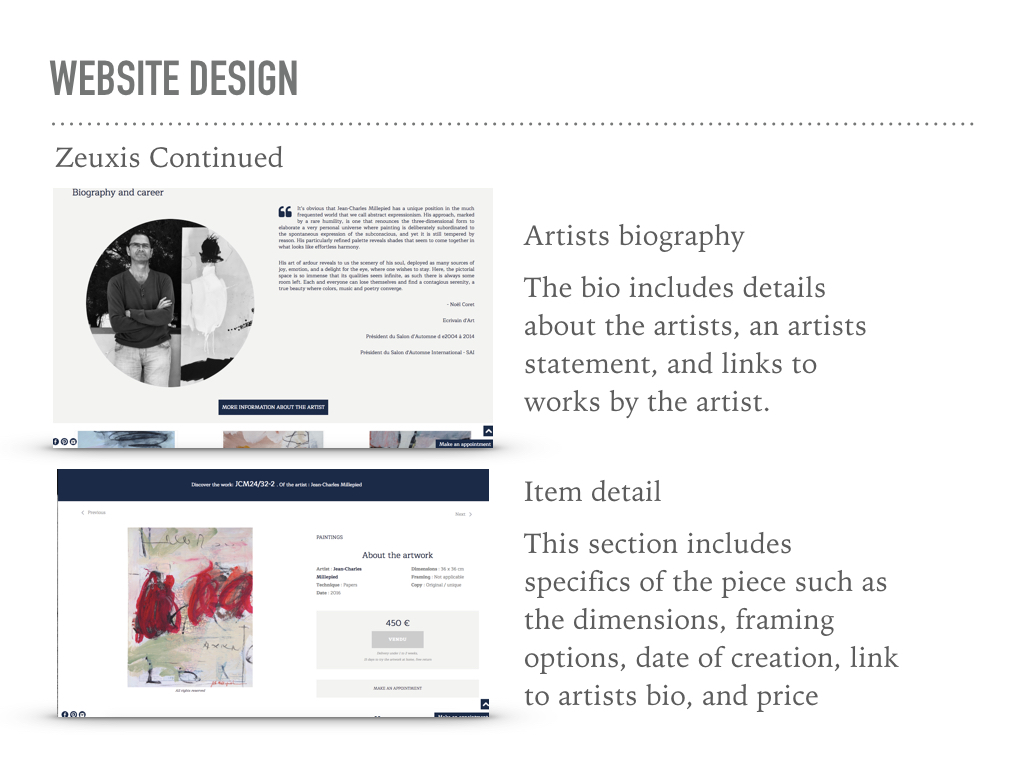 The concept of the website is to have "rooms" for each artist and buyer (similar to the home rooms for decoration).