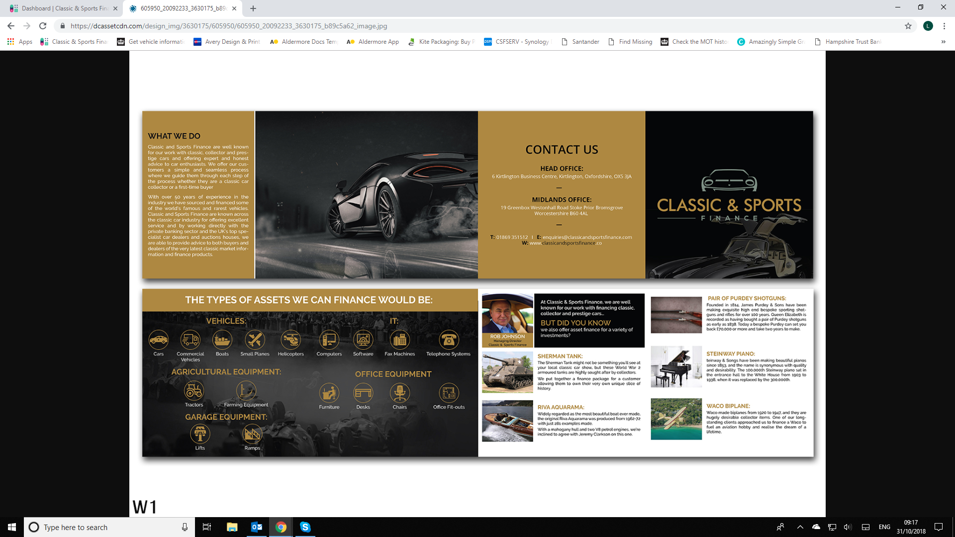 • We would also like a page identifying we know that our customers know us for classic and prestige cars but add in ‘did you know we can also offer…’ possibly along with a picture of Rob.
