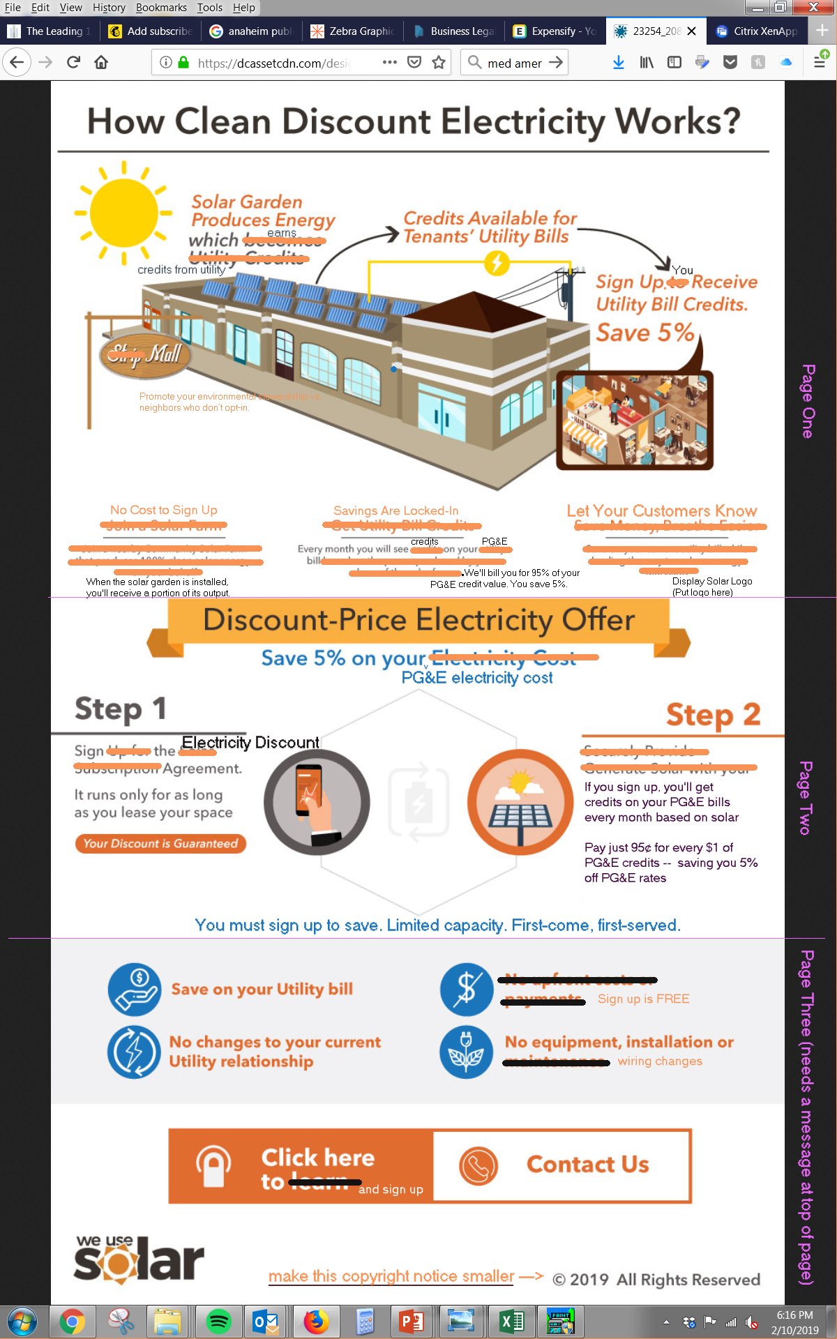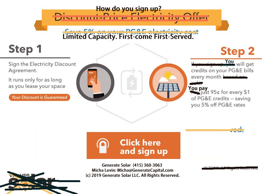 Need a short one page-3 part build showing how the program for discounted clean energy works - moving into a call to action with multiple links.