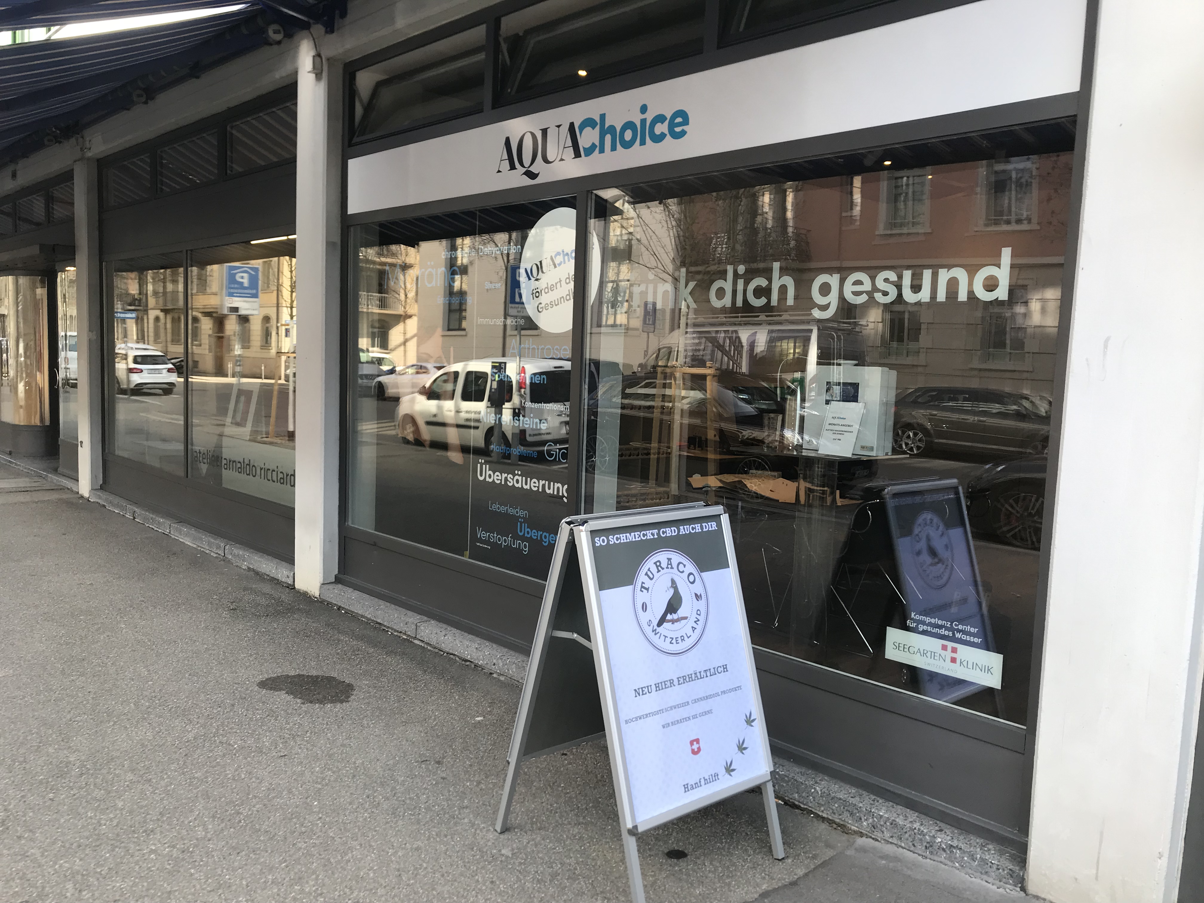 create a shop-window for two startups under one roof. We have two company logos and specialize in two different fields; alkaline ionized water and ionizers and CBD enriched beverages and oils. please check our websites! aquachoice.ch turaco.swiss There is a great synergy between healthy ionized water and the benefits of CBD. We want the window to display this Synergy. We need the design to be "clean", professional, not like a stoner headshop! Display the seriousness and healthy sides of the businesses. Closer to Pharma style. - anti-inflammatory - anti-aging - alkalizing - anti-oxidant - improved focus - immune-support Perfomance boosting - detoxifying - hydrating - watersoluble CBD - sleep inducing - anxiolytic (anti anxiaty) - skin improvement - stress relieving - neuroprotective (neuroprotective) * please find shopwindow dimensions attached in pictures * we have two lightpanels (dimensions attached