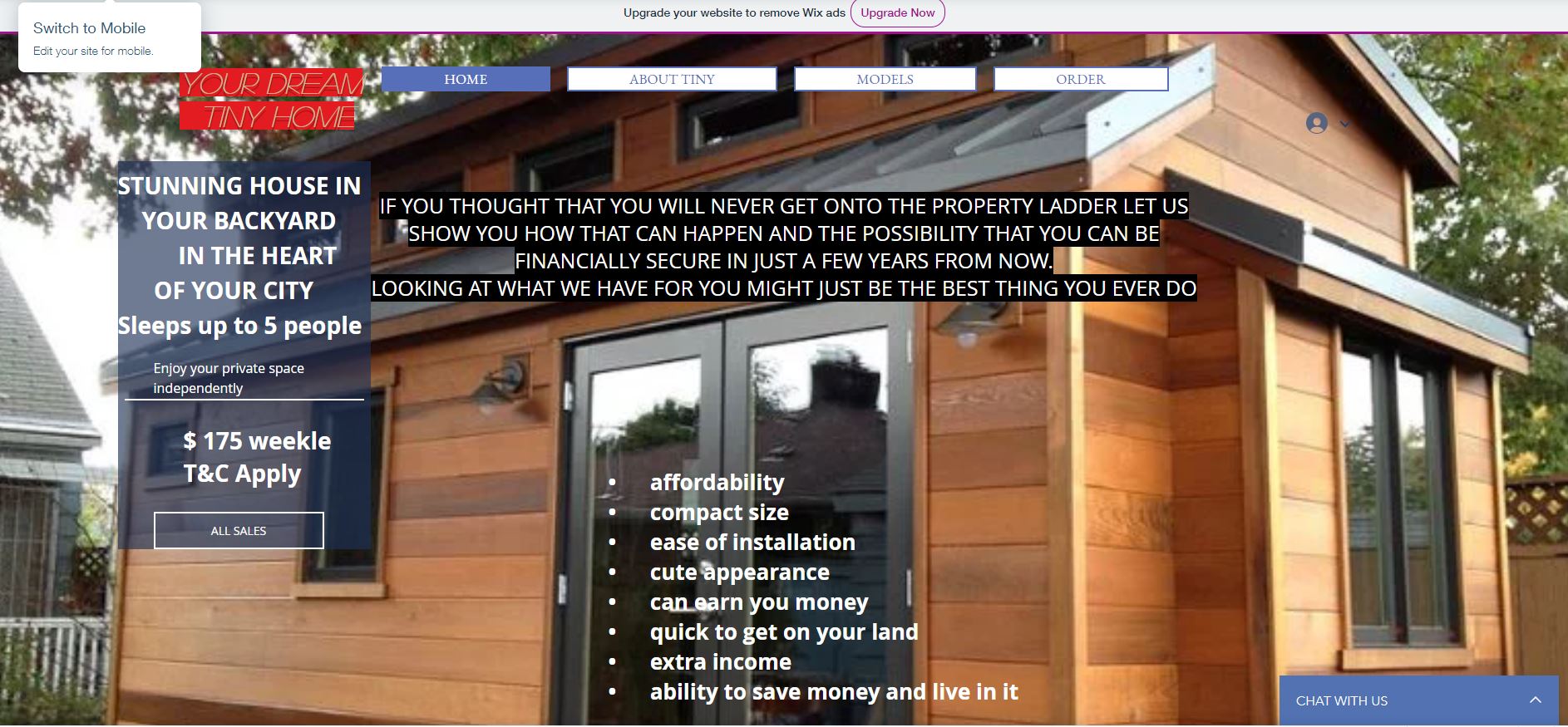 Design a Wordpress based website for selling Tiny homes