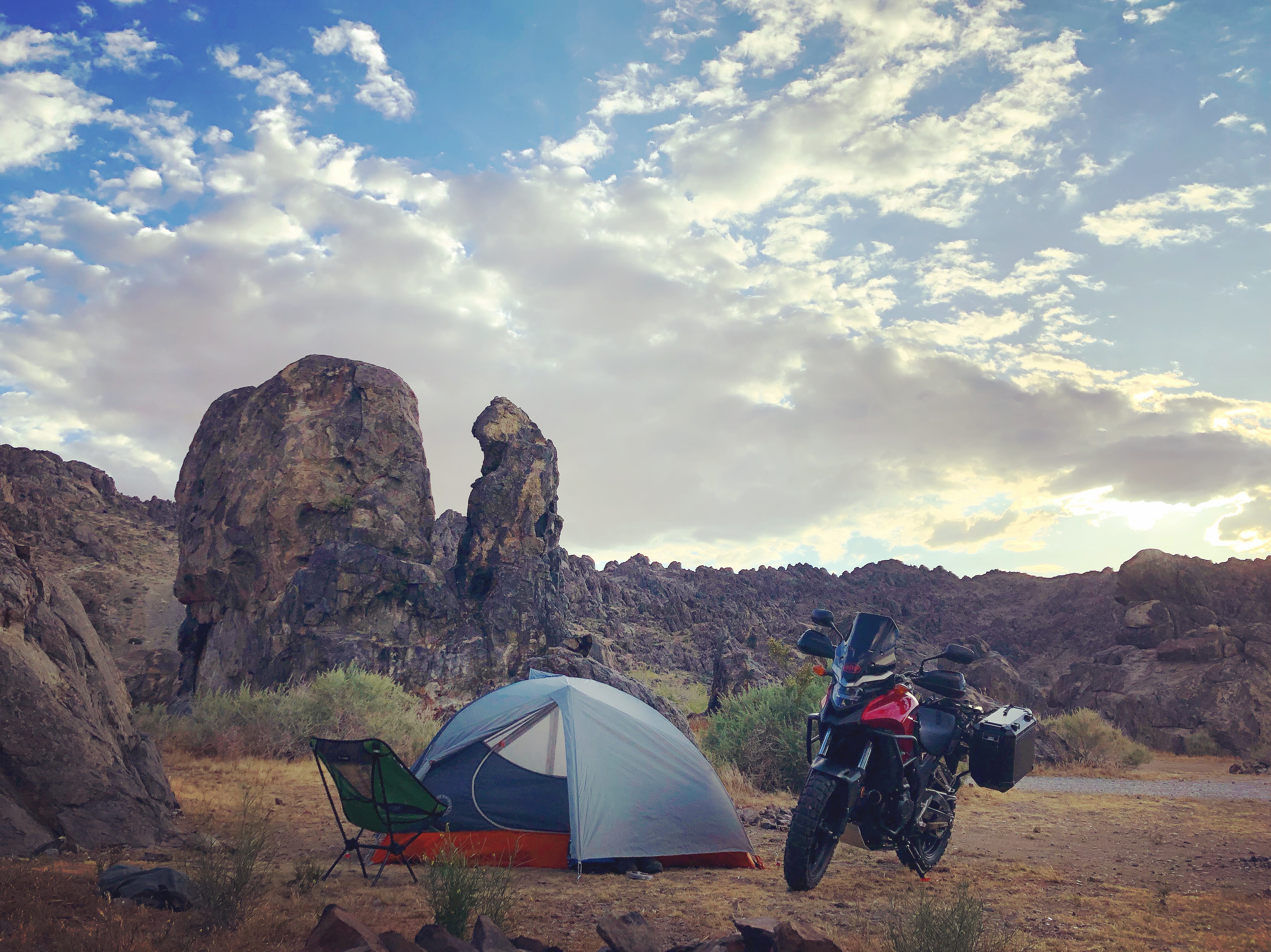 - elements of adventure motorcycling, tent camping, mountains, desert. Does not have to include ALL OF THEM. Nature elements like mountains and trees are preferred. If a motorcycle is featured it has to be an Adventure Style motorcycle, not a cruiser or sport bike.