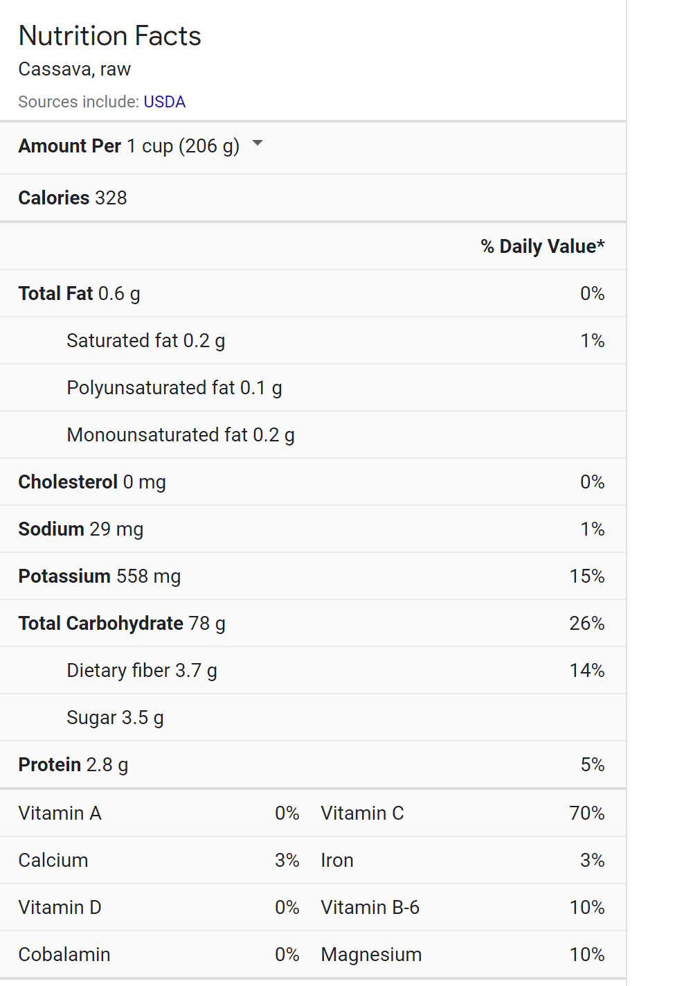 Nutrition Facts for Cassava Leaves Thursday, 18 March 2021 00:49:52