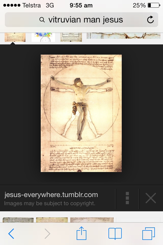 I would to combine the image if Da Vinci's Vitruvian Man superimposed with an image of the classical representation of Jesus crucified, preferably in black and white or similar to Da Vinci's original. I would also like the common body to have lowered angel wings alongside it that are damaged.