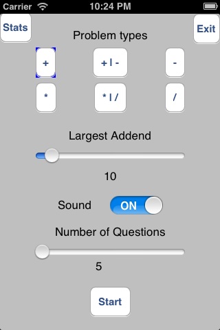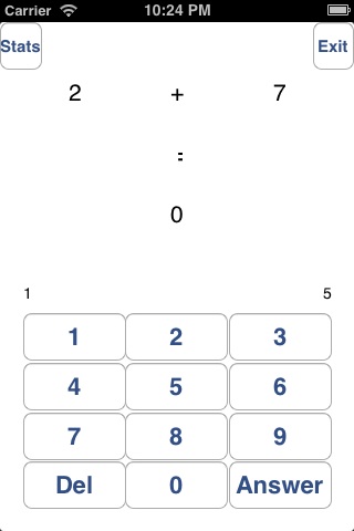 - It shows the number of problems total, the # correct/incorrect, and an exit button to quit and go back to the first screen.