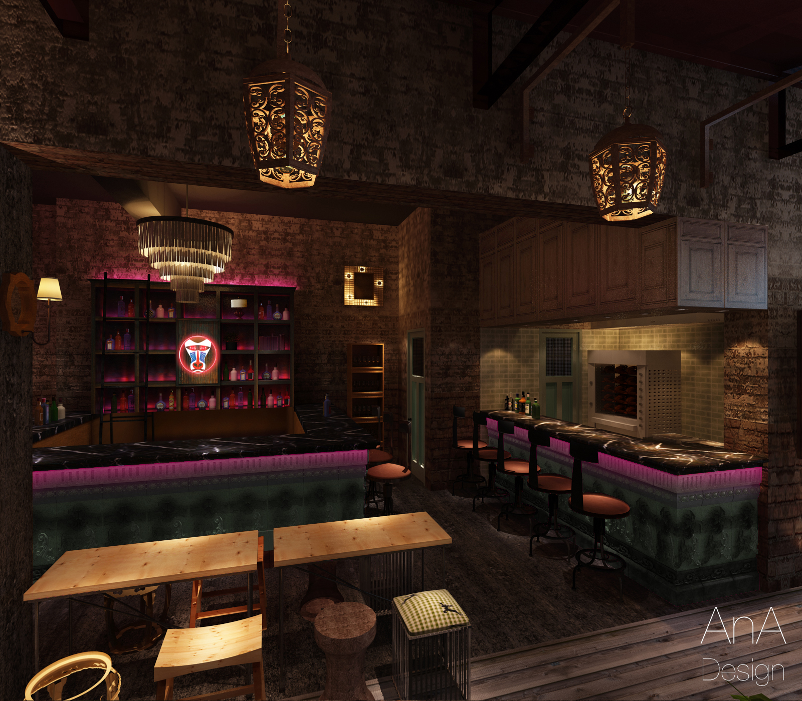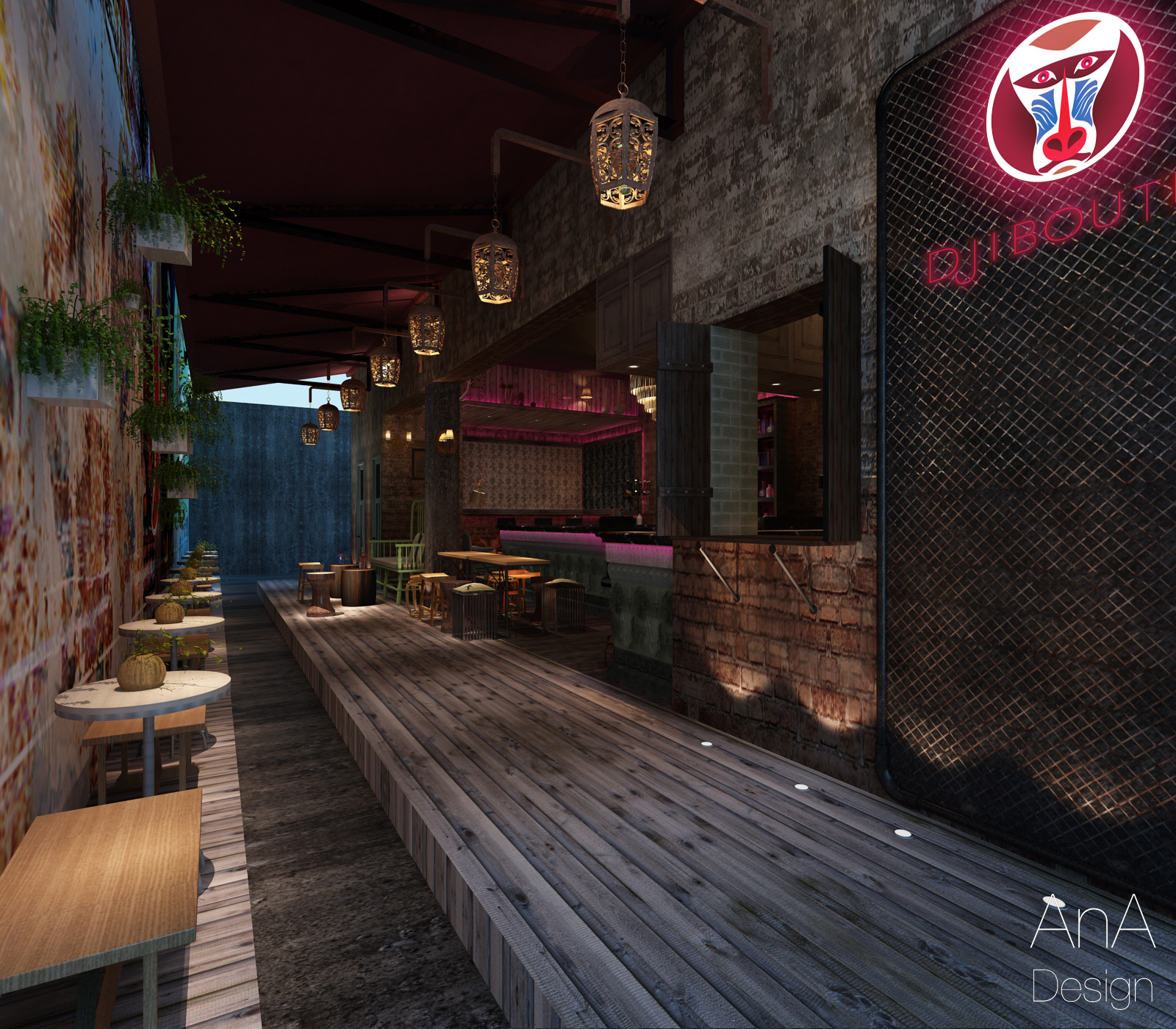 However, it is very imperative to stress, that the overall look and feel of Djiboutii is a very high end cocktail lounge/ bar location. The bar is tucked away in a hidden alley, so people will have to know about it. The idea is to send the consumer off in an Escape or hidden remote location where they are at ease in a hip, stylish and trendy environment.