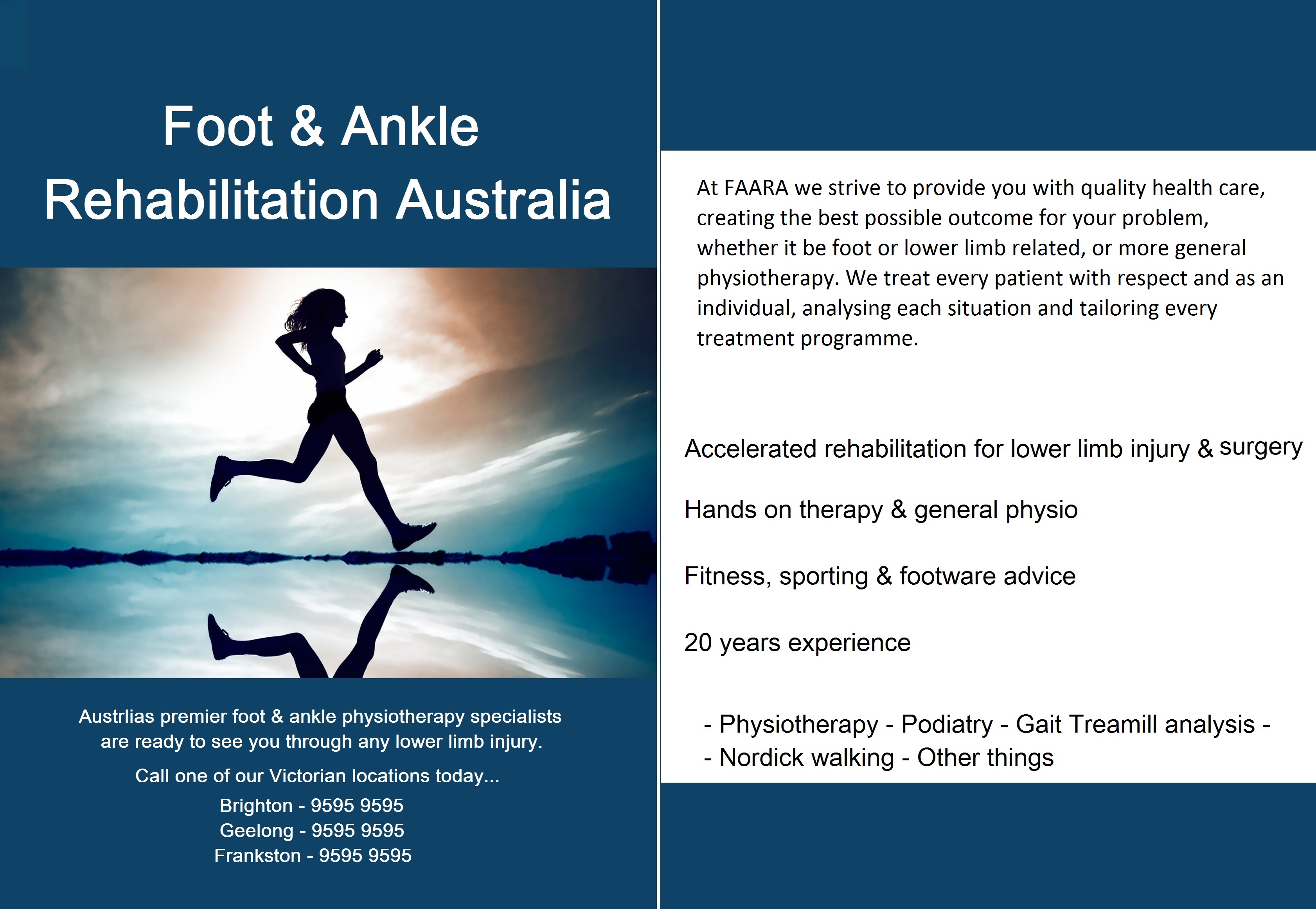 "FAARA is Victoria’s leading specialist provider of rehabilitation for Foot & Ankle injury and surgery.