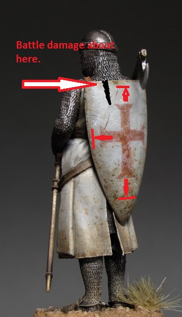 -The most important part of the image is the ground that the knight is kneeling on. It should have some tones of red to signify blood-soaked ground but not look like he's standing in a puddle of blood..