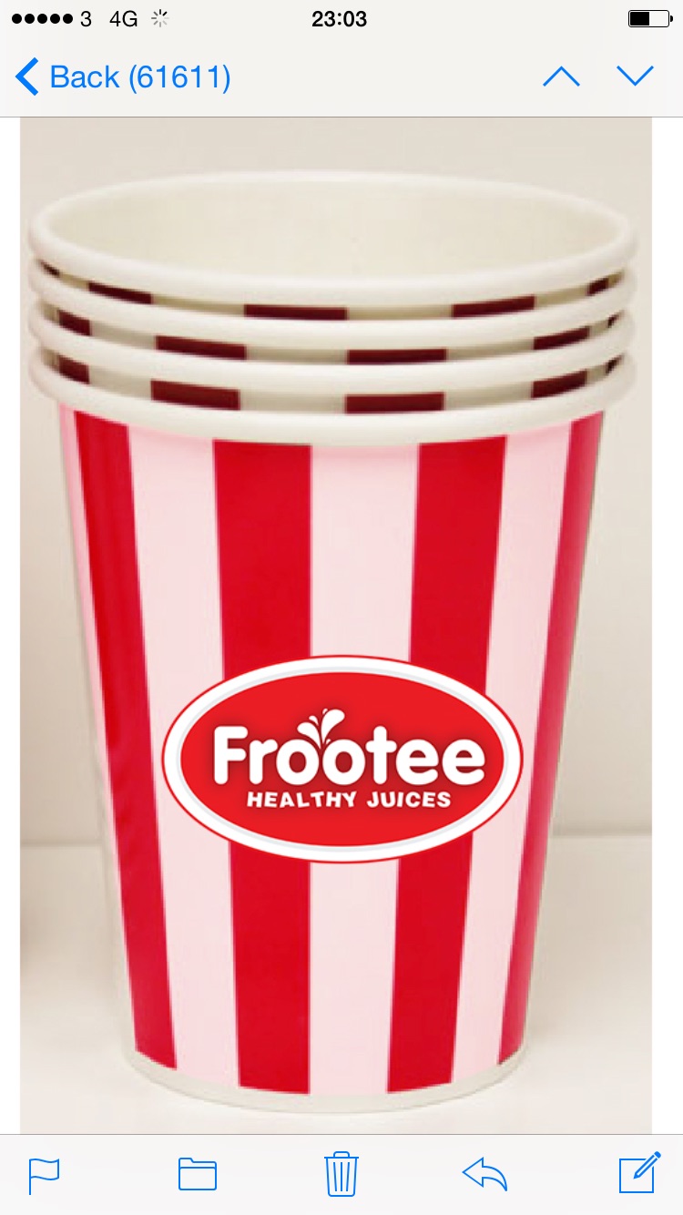 Frootee Healthy Juices paper cups